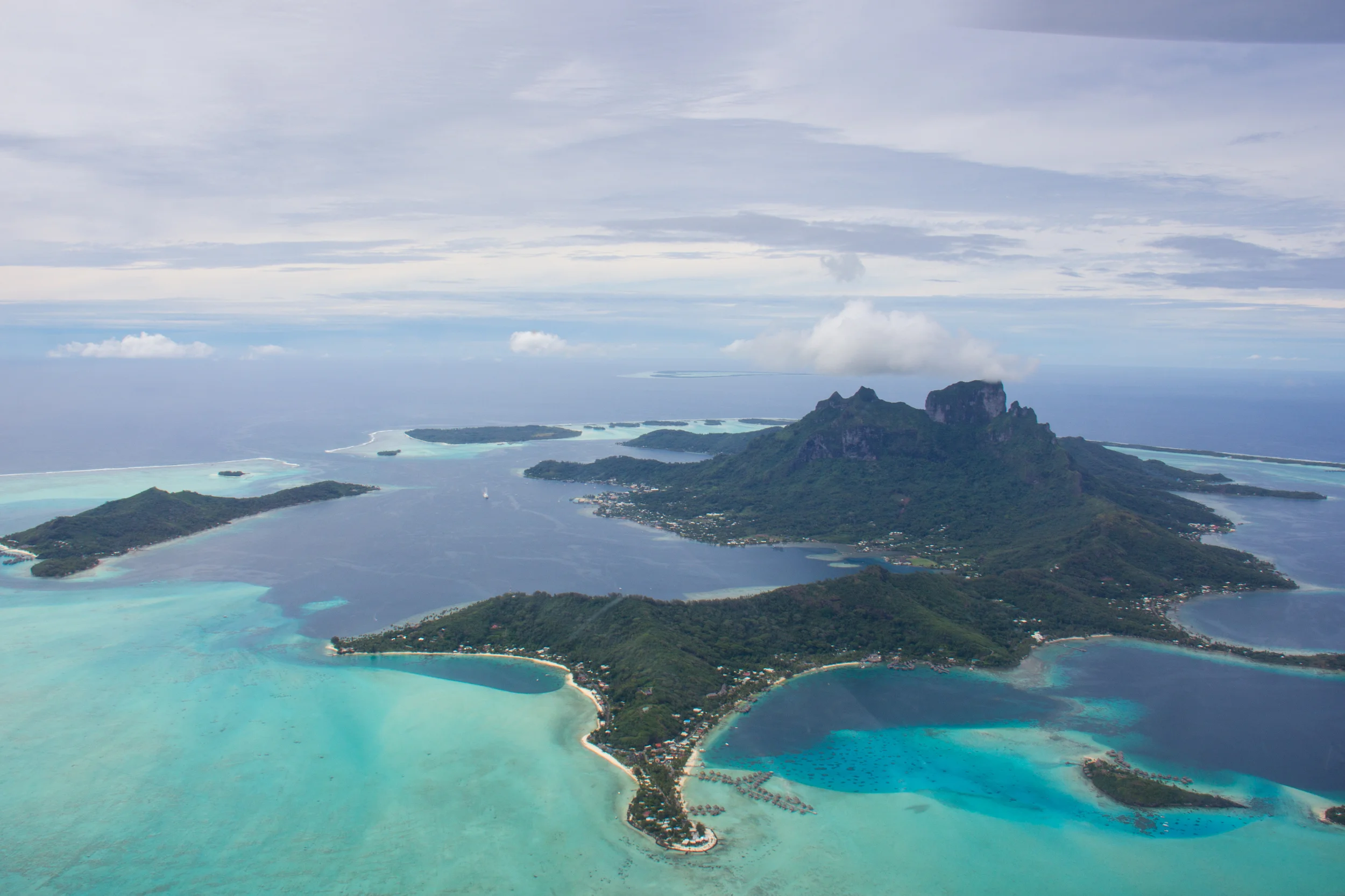 By far my favorite stop, though, was Bora Bora; the island is clearly famous for good reason. On our first day we spent the morning on a snorkel tour. At the first stop, the water was waist deep and as clear as glass and stock full of stingrays and sharks, which had no problem rubbing right against our legs as the guides threw chum into the water for them... (Eek!) Needless to say I screamed a lot but at least got some decent videos of the creatures. At the second snorkel stop the water was only slightly deeper and we floated around above coral and various fish and some of the group even saw octopi, though I didn’t happen upon any. Then at the third snorkel stop, though I was too tired to get in the water, I watched from the boat as a five foot barracuda swam in and out of the snorkelers and I thanked my lucky stars that I’d chosen to sit that one out because I just may have had a heart attack if that thing had come near me… After our snorkel excursion, we cleaned up and headed off to a helicopter tour over the island, which was so so incredible. Even though it was only 15 minutes, we saw every single color of blue within that one lagoon, we saw the morae (small islands) that surround the main mountain in the center of Bora Bora, and we could peek down at the luxury bungalow resorts (yes including the one where Kim Kardashian apparently lost her diamond earring). That night, our cruise ship hosted a beach party on our own private island for the night. We watched the beautiful sunset, ate some local food, then had a show of traditional Polynesian dancers and fire dancers – an exciting sight to be sure. On our second day in Bora Bora, we took a jet ski tour around the island that turned out to be a great way to explore the waters as we sped around from resort to island and past various sights. I heard that Bora Bora can get boring, and I can see how that might happen since there isn’t much to do there, but hell was it beautiful. I would love to go back someday and just laze on the beach or paddleboard over the stingrays or just to sit and look out at the bluest of blue lagoons I could ever imagine.